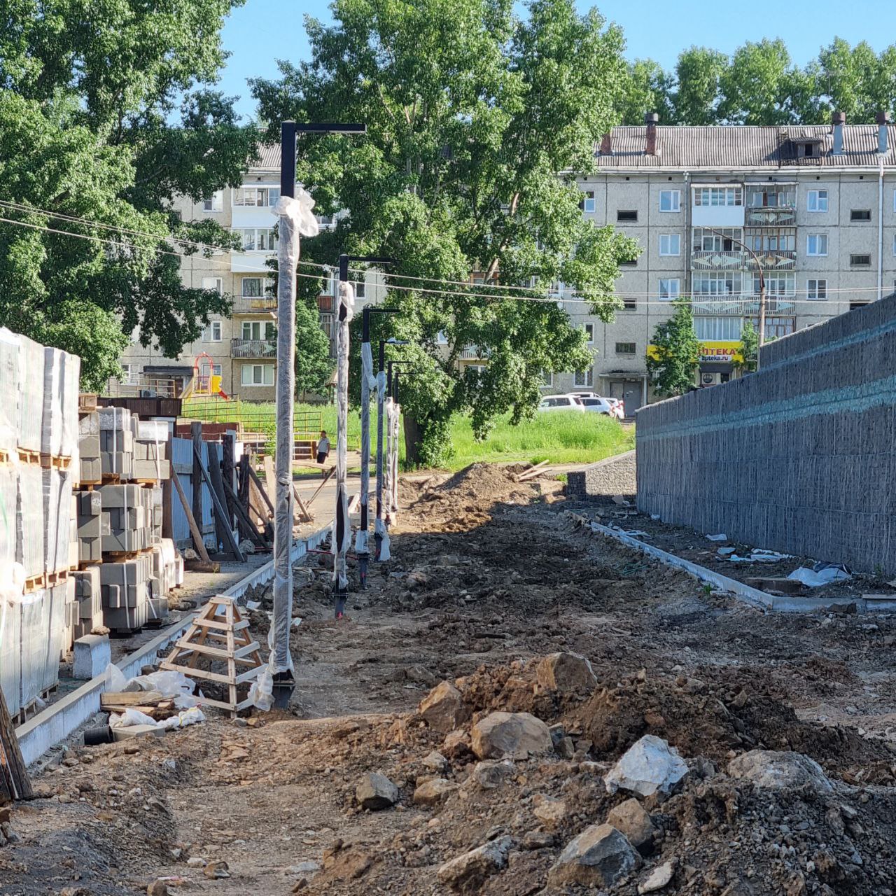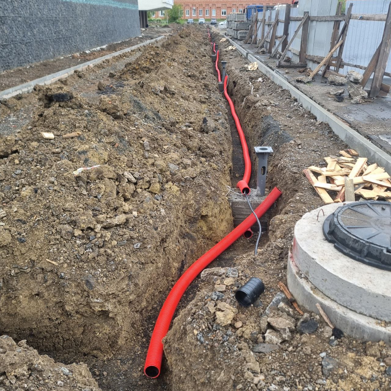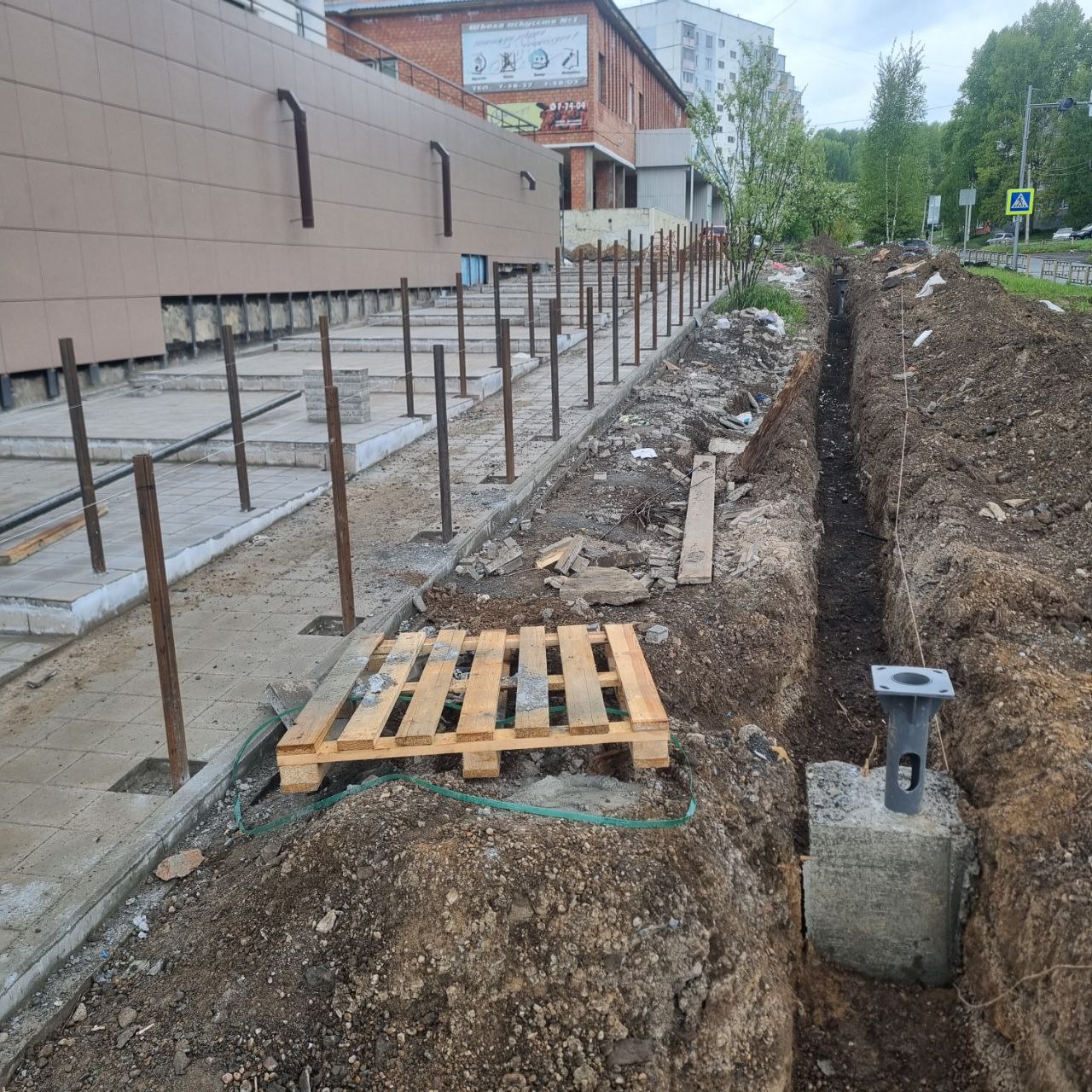 Залиты бетоном закладные опор освещения, начата укладка гофры в траншеях и протяжка Читать далее «Информация о выполнении работ по капитальному ремонту»