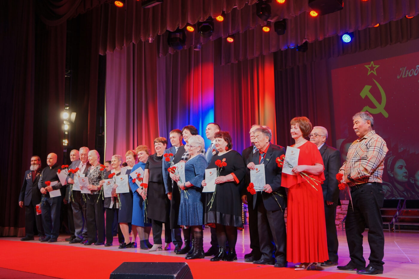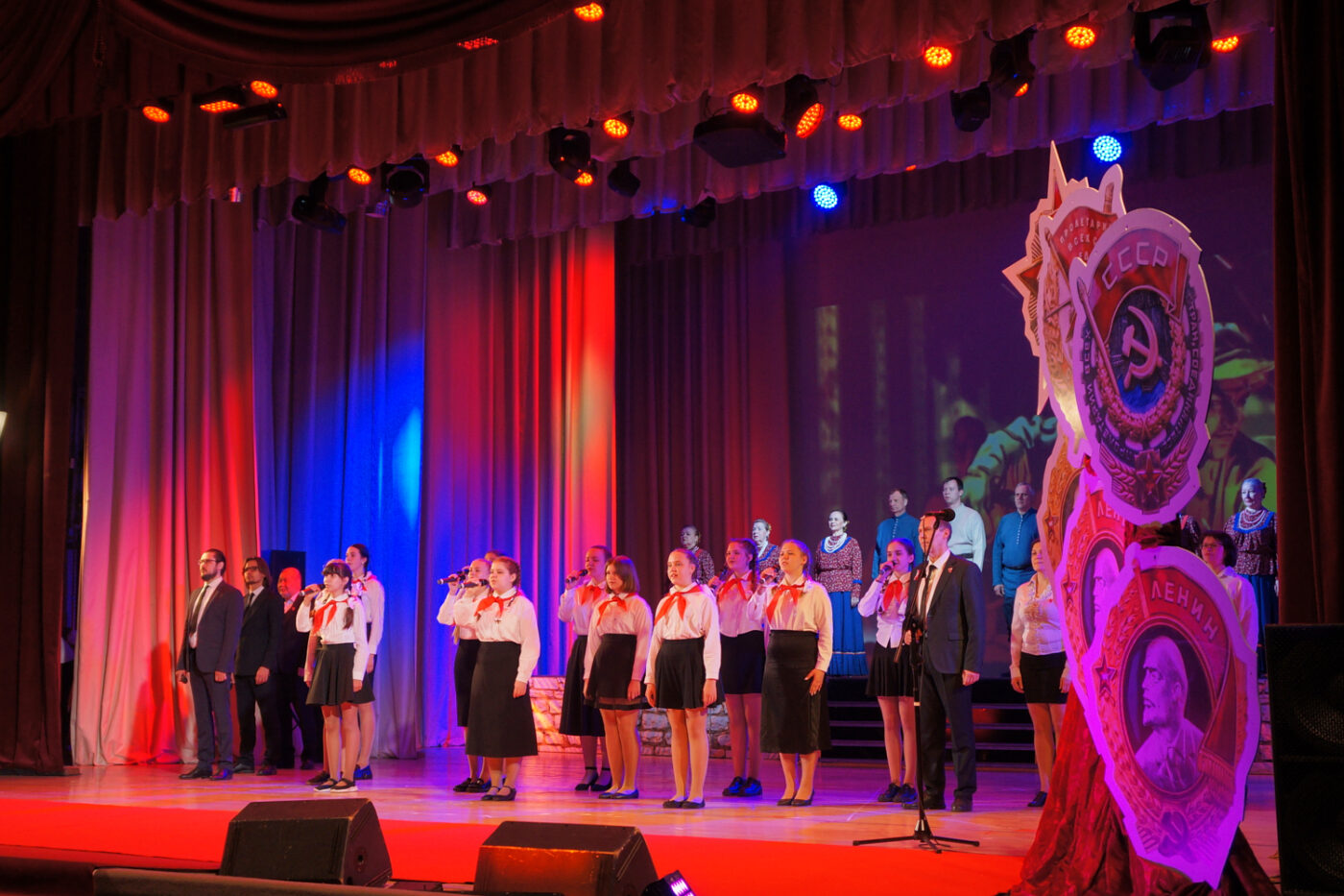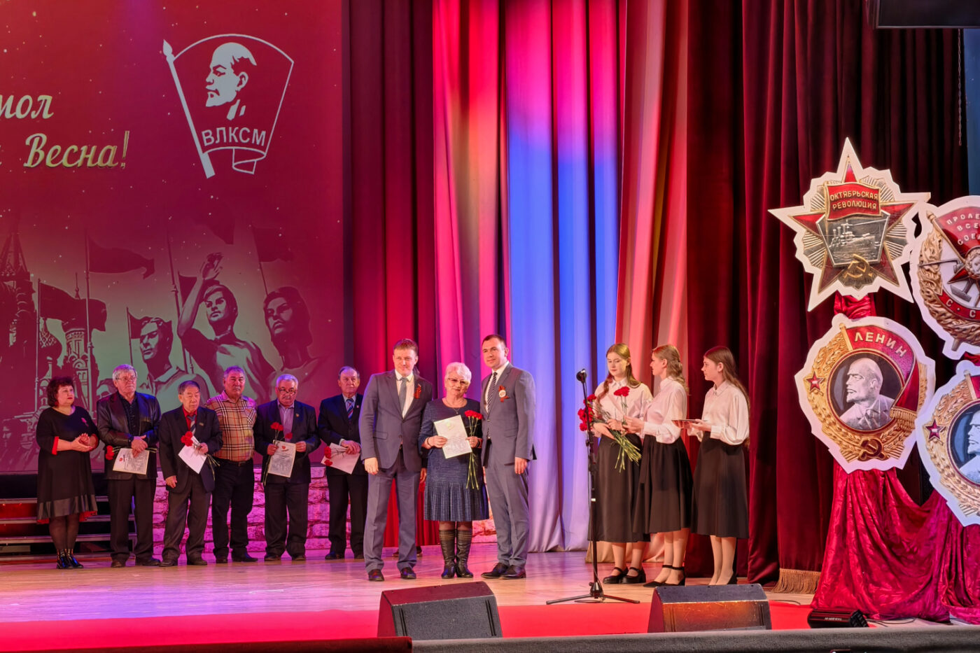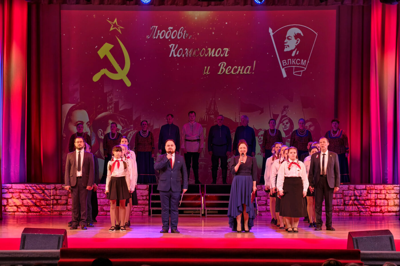Дух эпохи подхватила концертная часть вечера, которая по славной комсомольской традиции началась с переклички комсомольских строительных отрядов и торжественного выноса знамени ВЛКСМ, флагов Иркутской области и города Усть-Илимска. Ветеранов комсомола чествовали представители органов власти: мэр города Усть-Илимска – Эдуард Вячеславович Симонов, депутаты Законодательного Собрания Иркутской области – Артём Валентинович Лобков и Виталий Владимирович Перетолчин. Гости праздника горячо приветствовали аплодисментами поздравительный адрес от Валентина Петрова — комиссара Болгарского молодёжного Отряда имени Георгия Димитрова на стройке Совета экономической взаимопомощи и Всесоюзной ударной комсомольской стройке Усть-Илимского ЛПК в 1976ом-1979ом годах. «Совместный полёт между нашими странами, народами и ветеранами Братских Союзов Комсомола продолжается!» — подытожил автор поздравления.