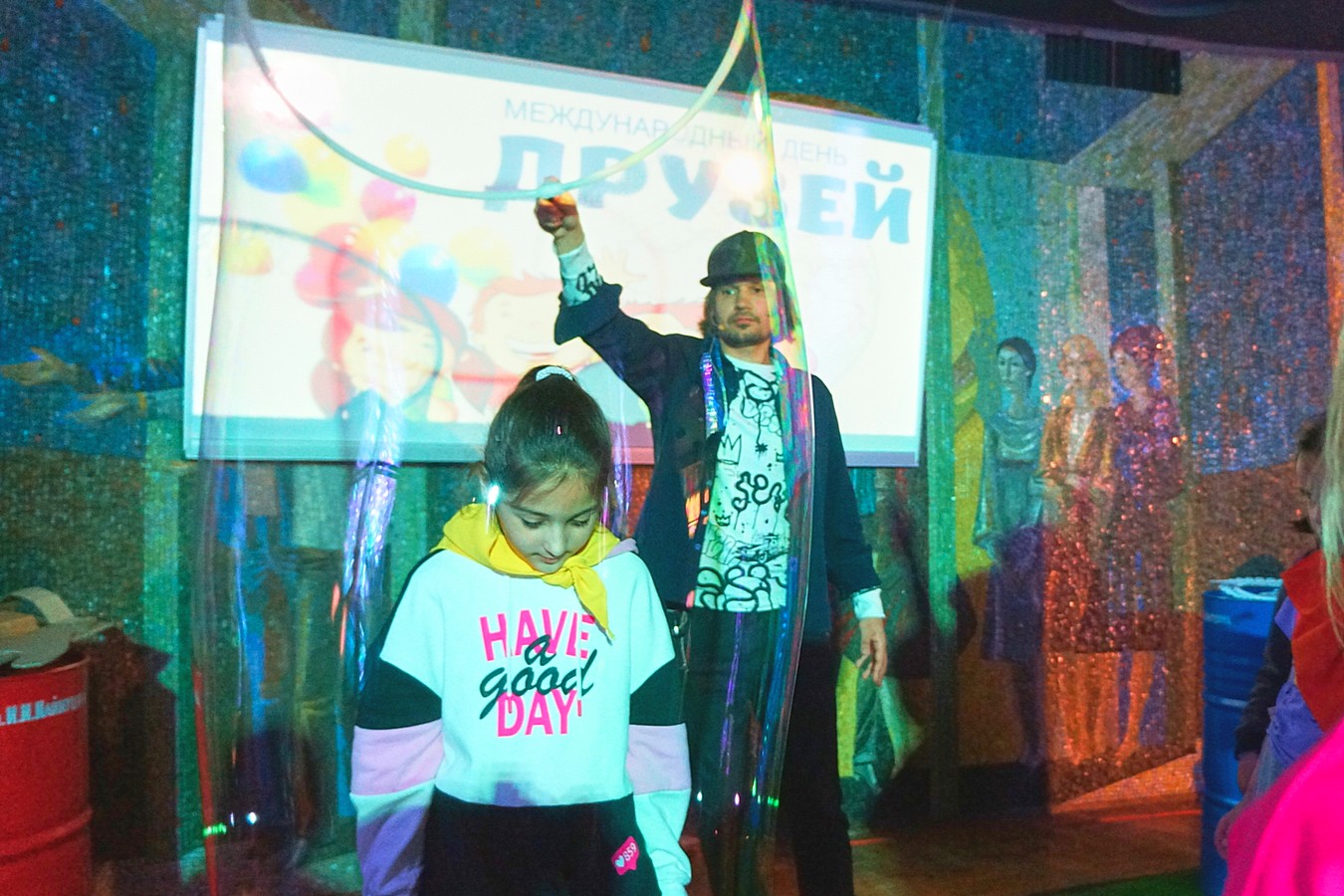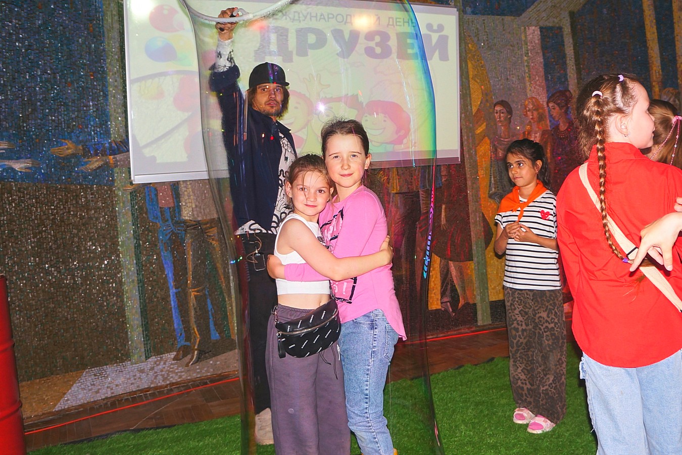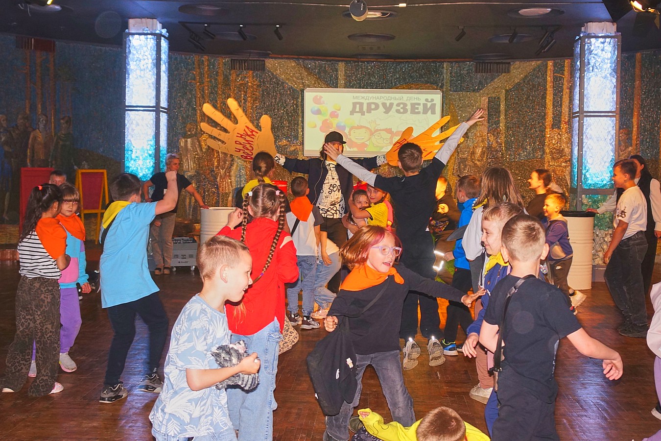 9 июня Дворец культуры имени И. И. Наймушина вновь распахнул свои двери для воспитанников детских оздоровительных лагерей дневного пребывания. Международный день друзей стал прекрасным поводом для встречи ребят на танцевальной площадке дискозала Дворца. Творческий коллектив организовал незабываемый праздник дружбы. Ребята с интересом исполняли коллективные танцы с уклоном в модные тенденции, участвовали в подвижных играх с тематикой яркого «апельсинового» настроения, познакомились с удивительным танцем — гимном Капибары… Впечатлило гостей и шоу мыльных пузырей. Дружеские объятия стали пропуском в самый большой мыльный шар праздника!